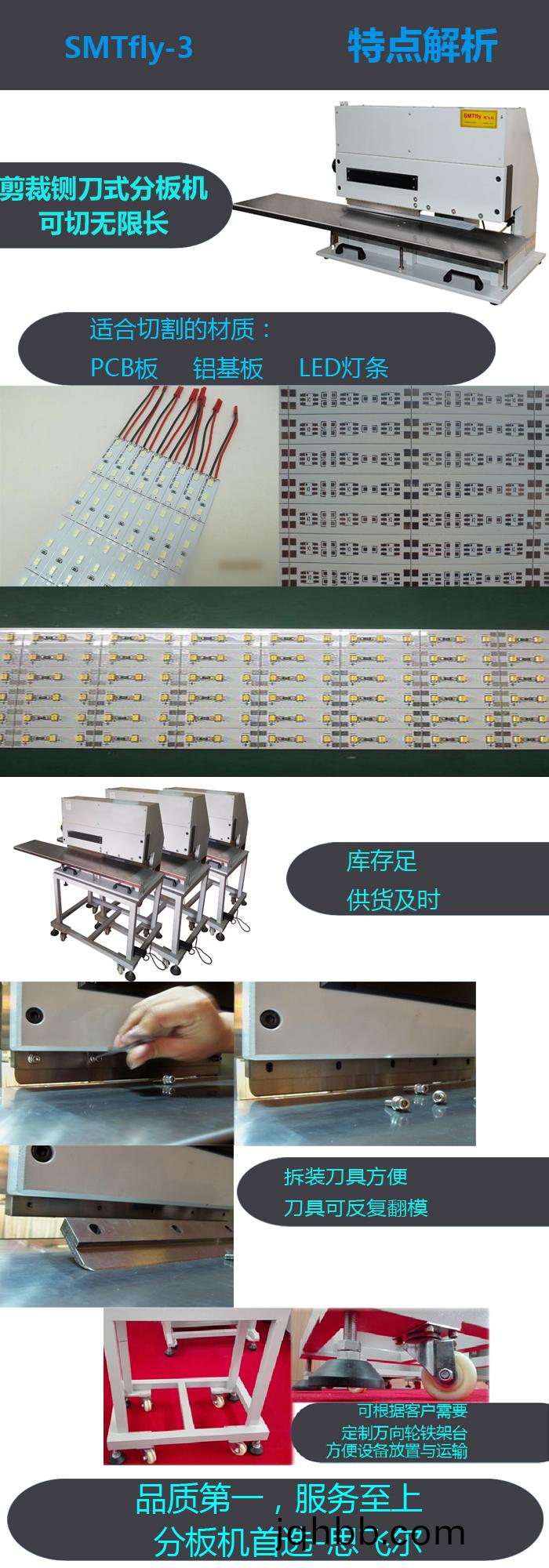●適用於各種PCB闆,鋁基(ji)闆,氣動式設計,無剪(jian)切應力,特彆適用于分(fen)割精密SMD薄闆,鋁基闆等.